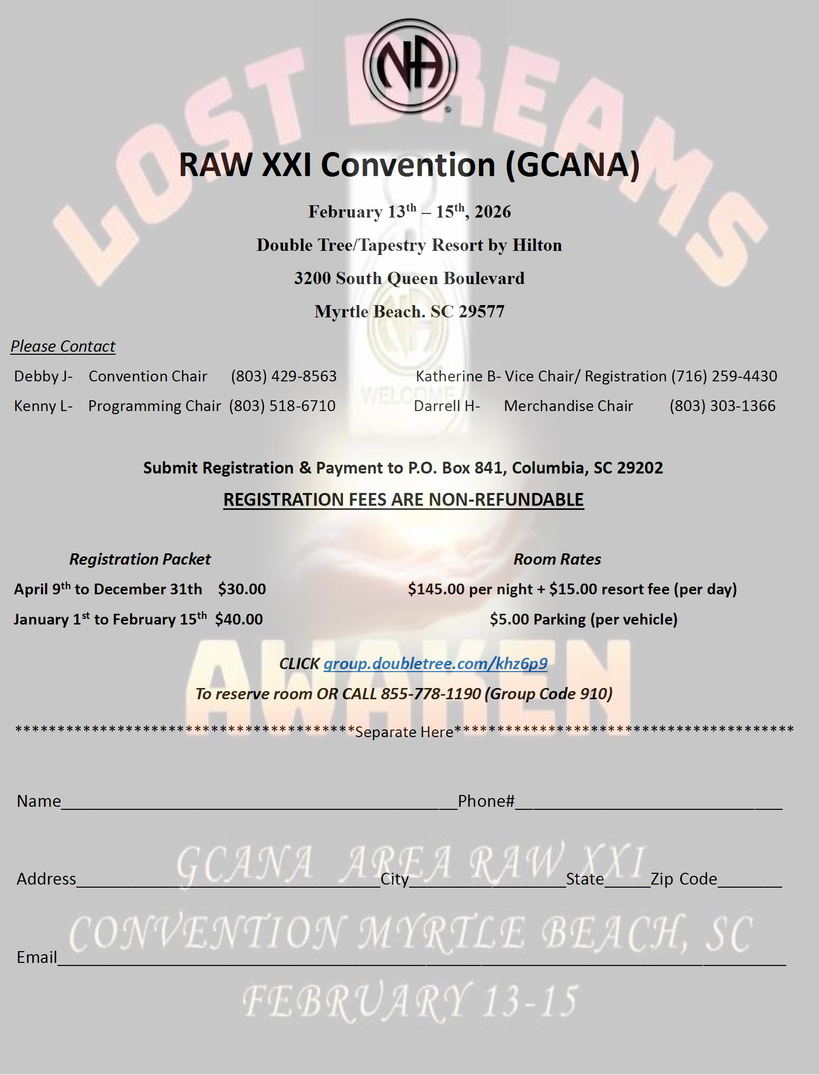 Upper South Carolina Area NA Convention! Preregistration $25 until December 31st. $30 after. You can preregister on our website!